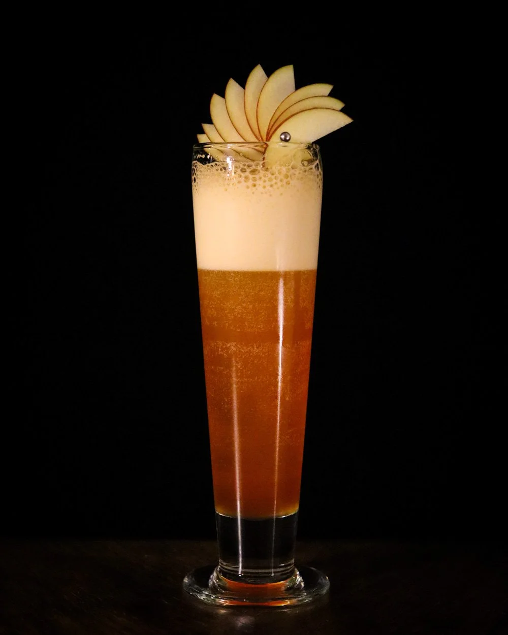 Base of the cocktail is a bold and bitter-sweet amaro, Cynar brings complex earthy, herbal notes as well as a hint of toasted nuts and citrus. Apple juice lengthens the drink, while at the same time pairing well and enriching the flavour of the base spirit. Touch of fresh lemon juice wakes the cocktail up with refreshing and fragrant tartness. Cinnamon syrup further builds on the warming aspects of the drink while also balancing the tartness and bringing subtle addition of tropical spice. Last but not least, chilled ginger beer breathes life into the cocktail with delicious effervescence and spiciness.